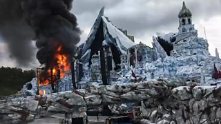 The fire started around 18:00 local time (16:00 GMT) on Wednesday. Videos posted on social media showed thick grey smoke engulfing the stage.